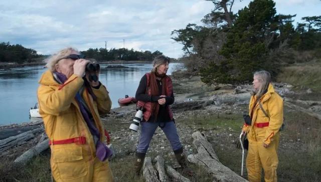 (图片中间是野生动物摄影师Cheryl Alexander,左右两人分别是生物学家Thomas Riemchen和Sheila Douglas)