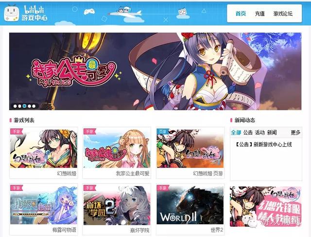 B站游戏中心展示的游戏有着浓重的二次元风格