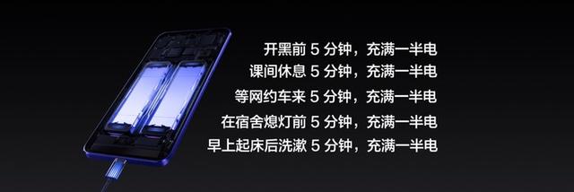 哪怕只对手机充电5分钟,也能将电量光速回血50%,彻底告别电量焦虑改变用户的充电习惯。5分钟能做的事情不多,但是能回血的电量不少!