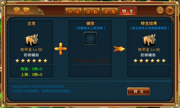 2.宠物转生可以将相同星级的宠物进行转生,提高宠物属性和解封封印技能。