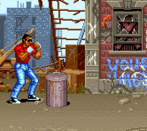 BUG:在第二关的后半部分,有一个可以捡起的水桶扔到敌人的头上,使他“绕圈走”直到被击中。在两人(或多人)游戏中,如果一个人在整个关卡的其余部分都拿着水桶,让第二个玩家进行战斗,直到到达BOSS,然后将水桶扔到BOSS(一个从箱子里冲出来的大个子)身上,游戏就会崩溃让boss角色漂浮在屏幕上,而无法被击中。