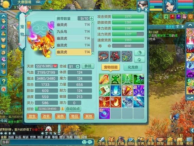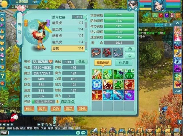 宠物方面,这只变异灵鹤可以说是很有个性,不是卡了很久109的玩家估计也懒得去洗这样的宠物出来吧。血攻加点,配高驱鬼克制,护符是高强力和小夜战,算是晚上作战的血攻克制,感觉可能是血加多了,1486的攻击好像不太够。