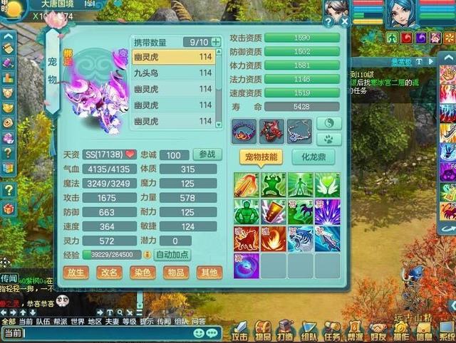 应该是这个角色中,天资最高的宠物了,6技能血攻剑气,资质都很完美。技能上,带有高强壮和高幸运,生存能力大大增加,护符还是百万的高偷剑气。而且和之前的老虎都不同的是,这次这只是高神宠物,之前可都是高保命,作为首发宠,确实和别人不一样。