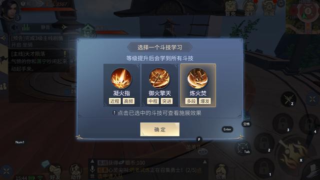 游戏开始和小说出入不大,自天才陨落开始,跟着主线走就行。3级的时候学习第一个斗技(技能),同时领取坐骑——白马(传说中的斗气化马)。这里和其他游戏不一样,所要学习的斗技是由你选择的,并非是固定的,虽然只能选择一个,但是随着等级提高可选择的技能也是可以学习的,只是先后的问题罢了。武技分为:斗技,功法和心法,都是随等级升级。