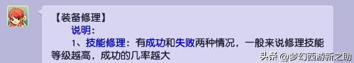 4、找长安城布店或铁匠铺门口打造修理的摊位修理装备。修理有一定几率会失败。这里要说一下这种方式的装备修理的成功几率只和修理技能等级成正比,即修理技能等级越高,成功几率越大,梦幻精灵也给出了解释。