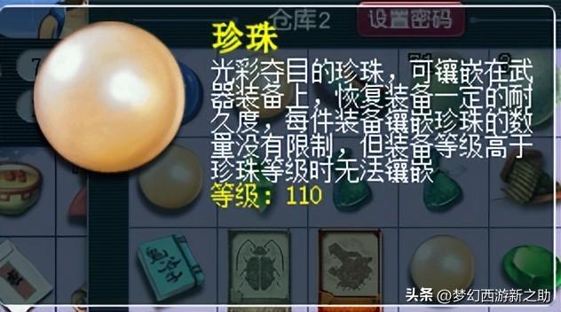 1、使用珍珠进行修理。条件是珍珠等级大于等于装备等级,且装备耐久小于装备耐久上线的80%才可以使用。100%成功不会失败,失败三次也能修理。这里要注意用珍珠修理宝宝装备的时候只需使用珍珠等级+5>=召唤兽装备等级的就可以(比如的你宝宝装备105级,只需使用100级珍珠)恢复宝宝装备200点耐久。