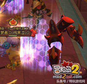 地图中的卡乐尔会随机出现保护罩,红色罩子为魔法减伤,白色罩子为物理减伤。这点一定要记住,因为后面出现同样的怪同理。