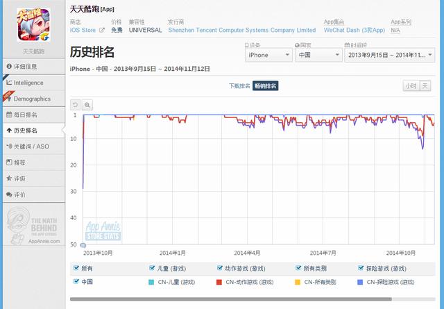 《天天酷跑》作为腾讯第一代智能手游旗舰真的是很猛,时至今日还能再上前五,真是颠覆了很多业内铁律,可能是目前全球最赚钱的跑酷游戏。