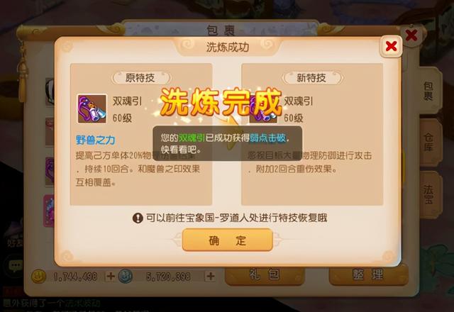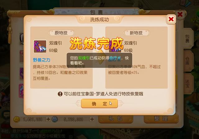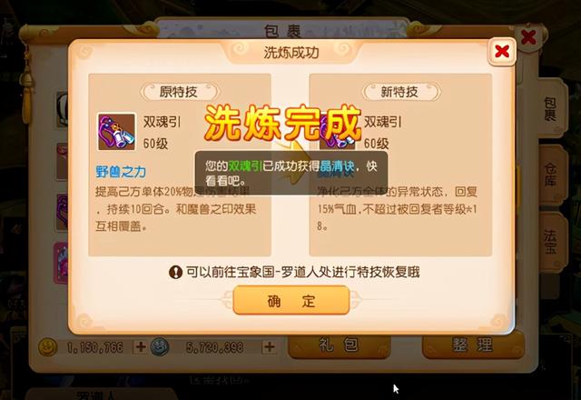 第二手洗炼则将野兽之力洗成了命疗术。命疗术在战局中对己方单体释放,可以恢复其40%的气血。尽管它能在一定程度上提升团队的续航能力,但其定位明显与方寸山角色的需求不符,所以这个特技依然不能保留。