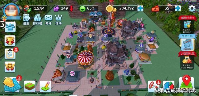 这款游戏的核心玩法是模拟经营。在游戏中,玩家拥有一块很大的地皮,可以通过精美的建筑系统建造各种各样的建筑,打造属于自己的游乐场,从而吸引更多游客,赚到海量金币,获得非凡乐趣。