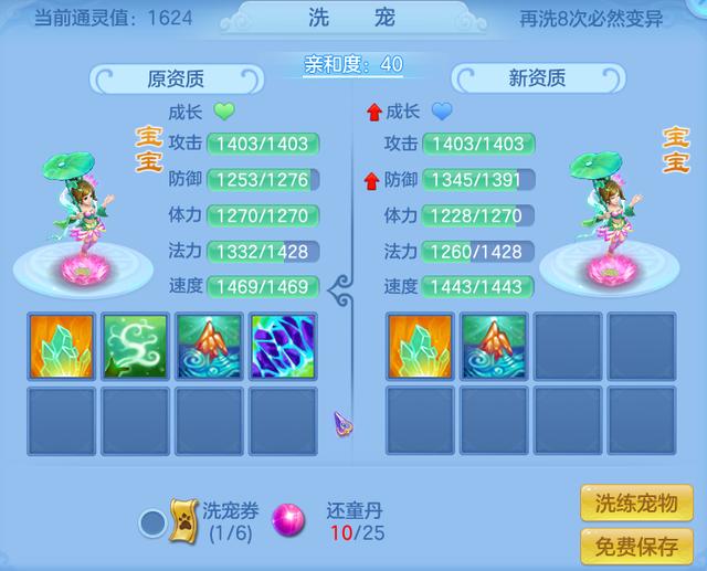 玩家初入游戏时,游戏将会为每一位玩家提供免费的新手宠物,这些新手宠物将会陪伴玩家度过前期的迷茫时期,帮助玩家成长。随着角色等级不断提升,玩家对宠物强度的要求也随之增长,需要寻找更为适合自己的战斗伙伴,这个时候就需要还童丹了。还童丹有几率将宝宝洗成变异宝宝,还可以重置宝宝的技能、资质、成长等,游戏中很多玩法都能获得还童丹,积累还童丹,定能洗出强力的宠物。