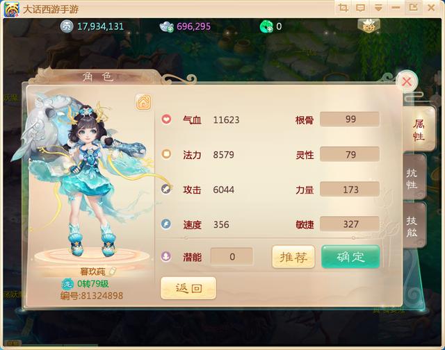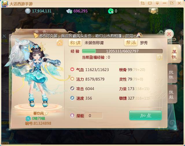 毕竟小编这种咸鱼,不怎么看攻略,加上前面的剧情啥的,都非常容易过,所以用推荐加点,还是很方便的。推荐的加点,主要加力量和敏捷,这样加到了79级之后,小编的攻击达到了6044,速度达到了356,法力有8579,血量11623,看上去貌似还行。