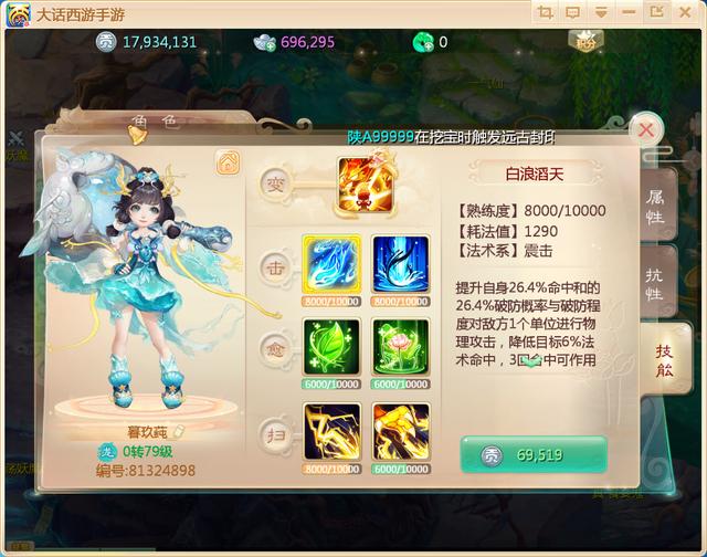 不过,战斗的时候,出现的一些场面,还是让小编很无奈了。主要是技能方面,小编的技能目前点到了8000的熟练度,然后单体的技能需要1290点法力值,也就是只能放6个单体技能,这样看上去貌似还行。