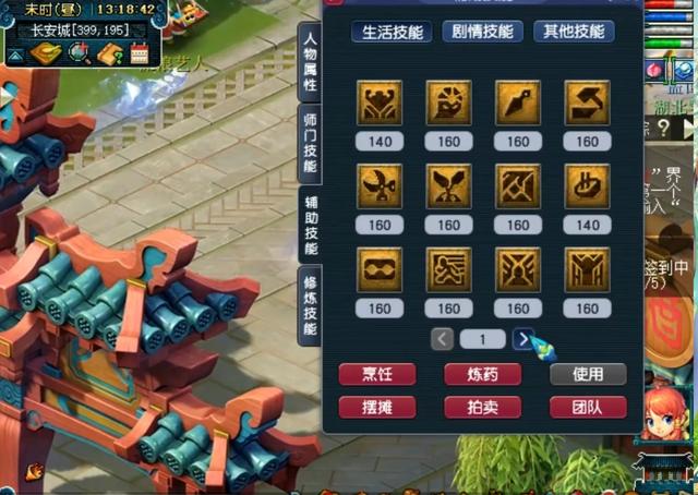 辅助技能方面,所有的技能都是满级的,包括了4个打造技能以及炼药、烹饪技能。