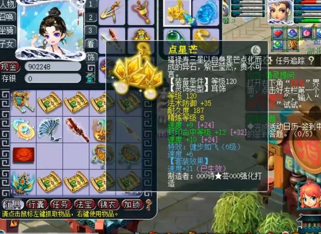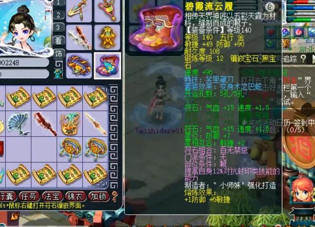 配置的灵饰装备前排属性为双速度一封印命中,而后排配置了双防御一气血,点化了6级健步如飞,宝石也精炼了8级。