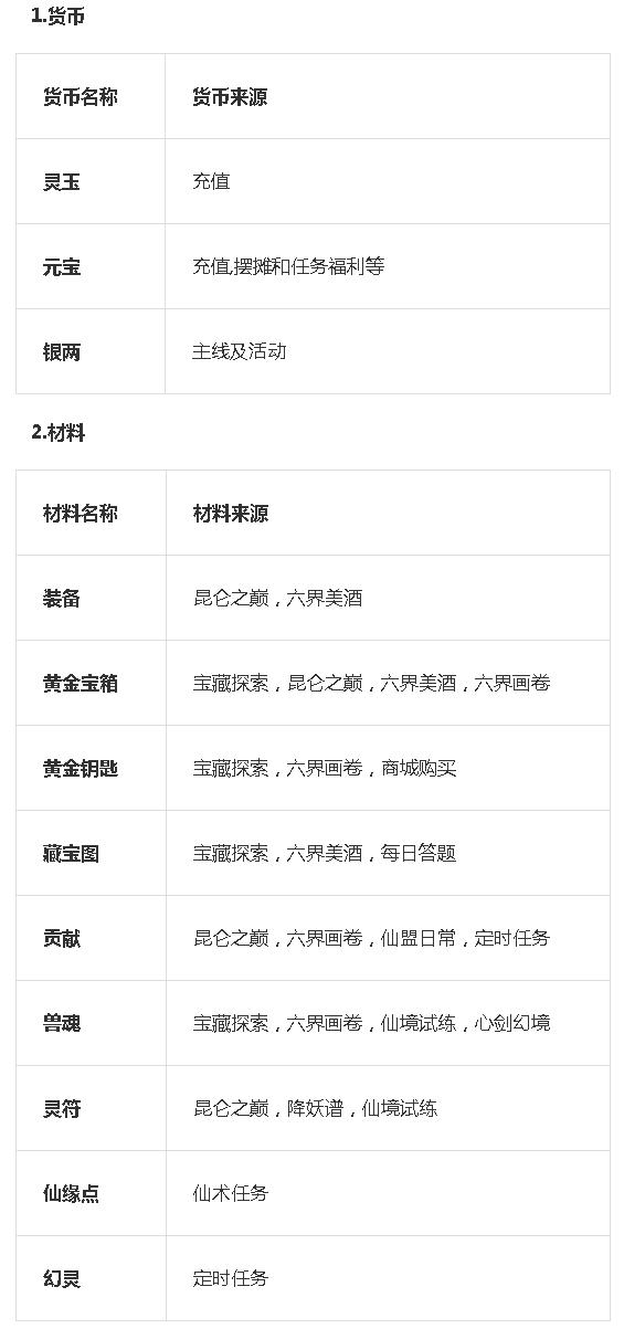 五.游戏货币及材料的来源