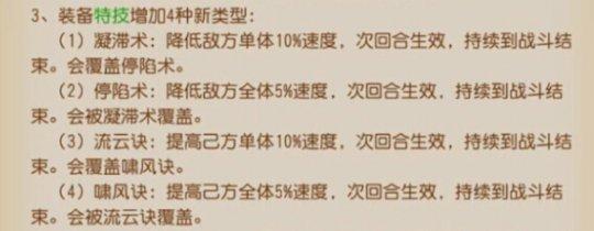 停陷术:降低敌方全体5%速度,次回合生效,持续到战斗结束。会被凝滞术覆盖。
