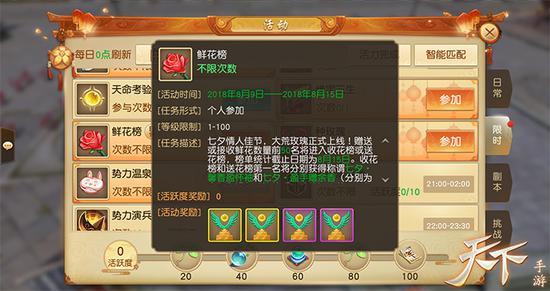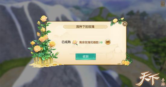 我能想到最浪漫的事,就是种一株玫瑰送给你!《天下》手游“庆七夕”活动期间,少侠可以在活跃度达到20、80后领取一株自动生长的“红玫瑰花苗”,到达指定场景后就可以开始种植啦。若少侠使用活力对玫瑰花苗对其浇灌,还可加速其生长,提早收获芳香四溢的玫瑰。不过一定要及时把结出的玫瑰花收割下来,路人可是会“有花堪折直须折”的!同时,采集下来的玫瑰花瓣还可以用来兑换雷音溟钻、七夕头像框、七夕聊天框等珍稀好礼,少侠可千万不要错过啦。