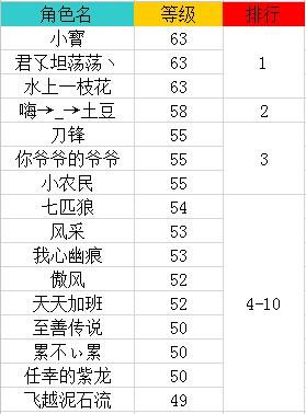 特别说明:由于存在玩家等级相同情况,所以本次活动获奖名单不止10名玩家。