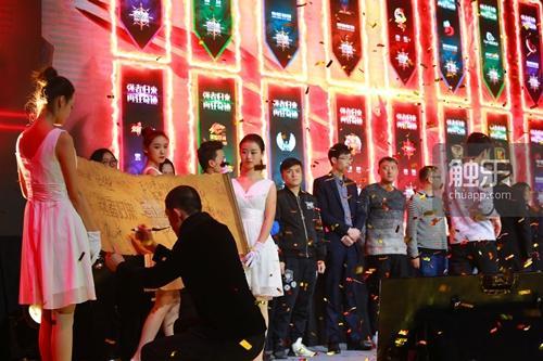 在发布会上现场举行游戏表演PK赛展现游戏PVP玩法