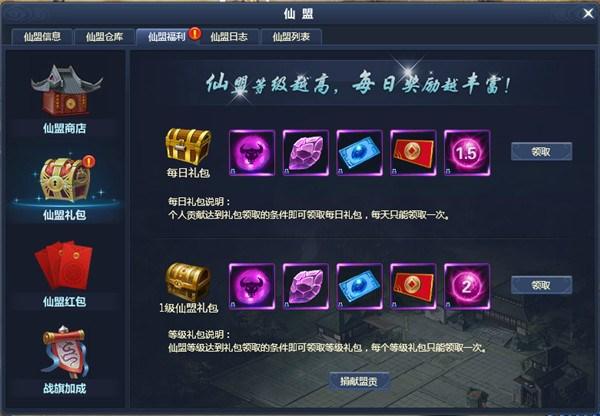 在360uu《通天西游》中,玩家们只需要跟随主线任务的脚步,即可在引导中加入属于你的第一个仙盟,在仙盟中,你既可以找到与你实力相符的战友们,一起闯荡仙界,更可以获得强大的战斗力加成,辅佐你成就一番伟业。每一个仙盟都拥有对应的等级,随着仙盟等级的提升,仙盟能给玩家强大的战旗加成,增强玩家的实力。同时玩家们通过捐献等手段获得帮贡,还可以得到不同等级的仙盟礼包,获取珍贵道具。此外仙盟商店,仙盟礼包都有着玩家们不可错过的惊喜,现在就加入仙盟,一窥其中的神秘吧!