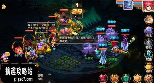 我们知道传送使者有真有假,要是找错了传送使者,那么你就会掉到下一层去。那么如何才能找到正确的传送使者呢?其实你只要打开系统,选择多人同屏功能,在走地图的时候查看哪个传送使者附近有大批玩家在战斗,你就能够找到正确的传送使者。