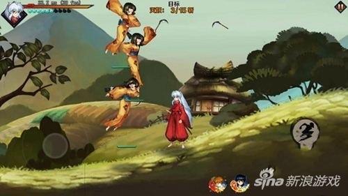 小怪关卡非常的简单,打败这些小罗罗就OK啦,稍有点难度的话,就是这些个妹纸都是飘在空中,手拿镰刀向下攻击的,这种斜下的攻击方式,有点犯嫌,犬夜叉-觉醒的话,主要以中上技为主,很简单,方向按上,动作键一阵按就完事了。