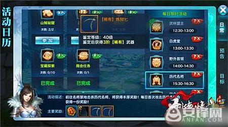 历代名将。活动时间:15:30-16:30,前往名将禁地击杀历代名将,可获得丰厚奖励。