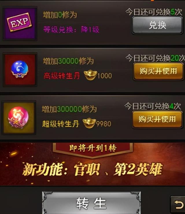 建议玩家最好在100级左右再去转生,然后再去使用降级,降3级就差不多了,就可以进行转生。