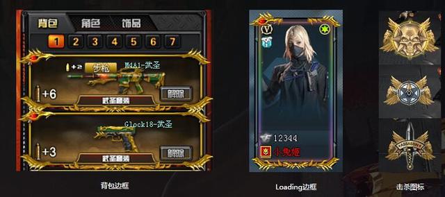 背包装备M4A1-武圣和Glock18-武圣时,将激活武圣专属套装效果,包括仓库专属外框、Loading专属角色边框、游戏内专属击杀图标。