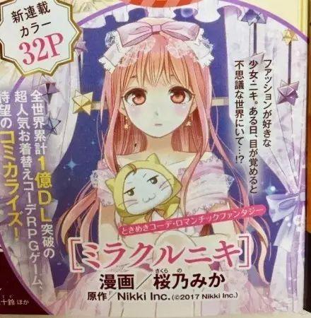 日本漫画杂志《月刊プリンセス》公布手游《奇迹暖暖》改编漫画连载开始。漫画由《神画师日志》作者樱乃みか负责,故事内容方面暂未公布。