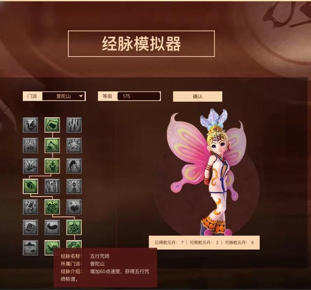 小编先来推荐普陀山任务使用的奇经八脉点法:推衍——生克——普渡——甘露——雨润——法咒——五行制化——五行咒师。这套奇经八脉点法增加了输出,很适合五开玩家用,一般任务,也就挂机秒秒秒。第四层没有点秘术接第五层的莲心剑意,考虑到不是纯咒师普陀的点法,而是以任务实用性来点,也就舍弃了莲心剑意,而选择点雨润后转法咒。如果有朋友杀比较费力的任务,而队伍就一个普陀山辅助的情况下,可以从第四层点了甘露以后,第五层转灵动,最后走莲台仙子的线路。