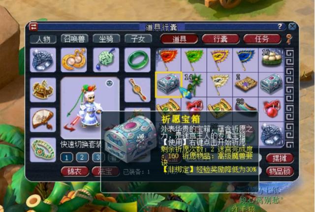 玩家可以去傲来渔港找到神机道长免费进行祈福,祈福之后还可以随时再找神机道长更改玩家希望获取的道具。