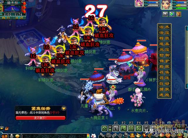 固定门派LG,一直使用龙卷雨击,有单位气血对于50%,对其使用龙腾