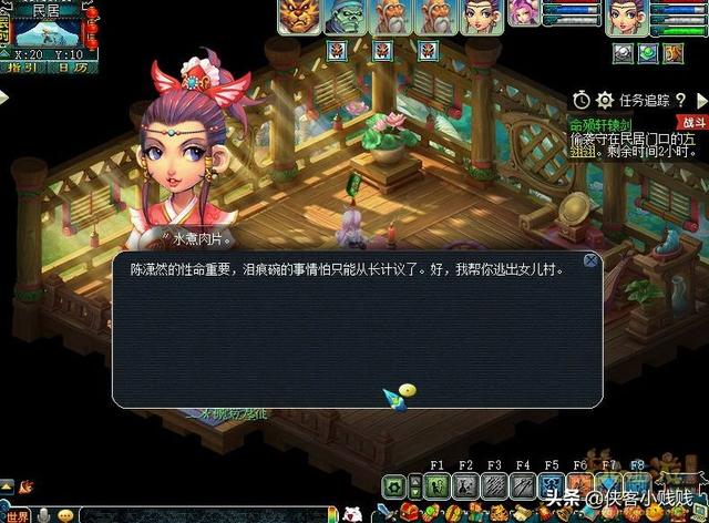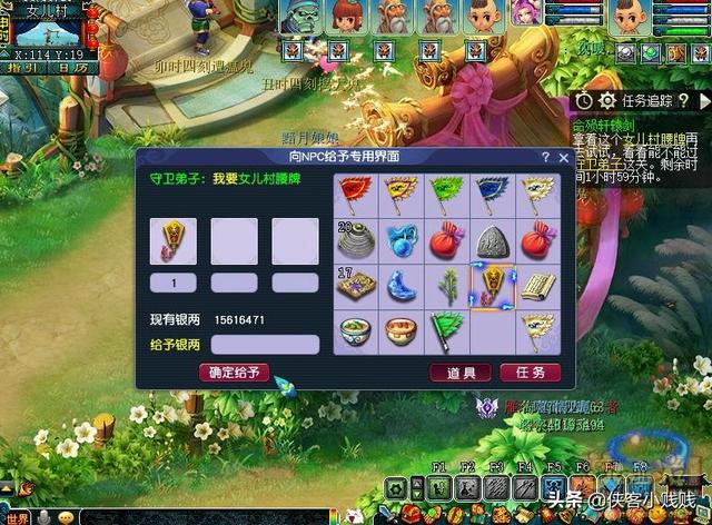 内心挫败的我们跑到海边吹海风,碰巧有个捕鱼人正在给自己家的小猫晒小鱼干,从鱼干中掉落了一个女儿村弟子的腰牌… …正所谓踏破铁鞋无觅处得来全不费工夫,我们利用这块腰牌顺利的混入了女儿村。
