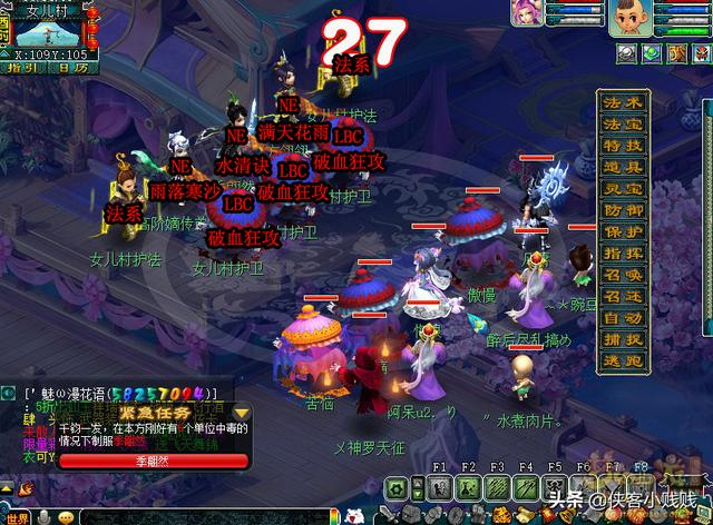 固定门派NE,优先对未中毒的玩家使用满天花雨,满天花雨必定中毒