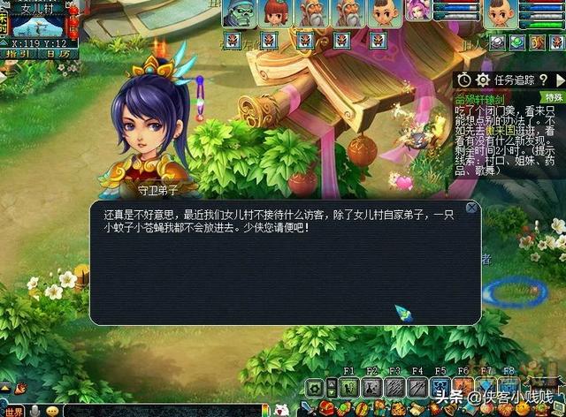 刚踏入村口没走两步就被一名女儿村弟子拦了下来,从交谈中得知,最近女儿村好像发生了大事,在没有解决这件事情前,除了本门弟子,一切外人都不允许进入。