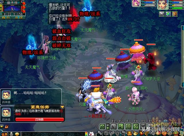 6、明白怪物的行动规则后,其实本场战斗非常简单,只要玩家把黄色蜃气妖和红色蜃气妖MW的特技封印,剩下的怪物是不会玉清诀的,玩家可以把所有怪物全部封上,慢慢打就可以了,队伍封系忙不过来的时候,辅助系和输出系其实可以使用无魂傀儡来进行控制,对面没有七宝玲珑灯。