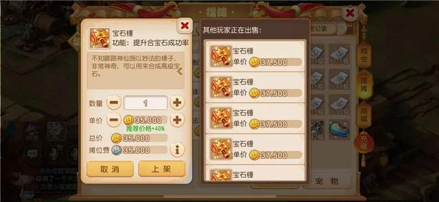 他所在的区服宝石锤的单价是3.7万金币,虽然看起来这张高级藏宝图挖得有点小亏,不过他认为宝石锤自己也能用,所以他就没放在心上。毕竟很多梦幻西游手游高等级玩家都有一个全身13段的宝石梦想,有了宝石锤能提升合成概率,间接能省不少钱呢。