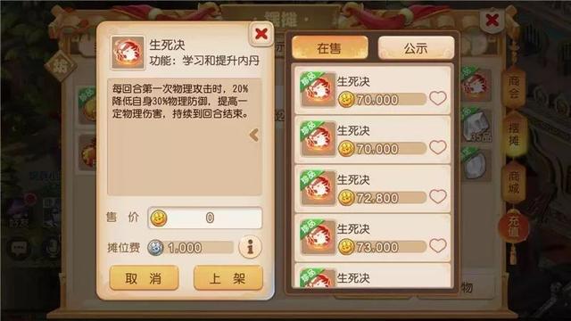 他在挖到高级必杀后,又挖出了一个生死决高级内丹。生死决高级内丹主要是给攻宠用的,每回合第一次物理攻击时,20%降低自身30%物理防御,提高一定的物理伤害,这种效果算是一把双刃剑吧。生死决高级内丹可摆摊卖7.2万金币,扣税后他可以小赚2万多金币。