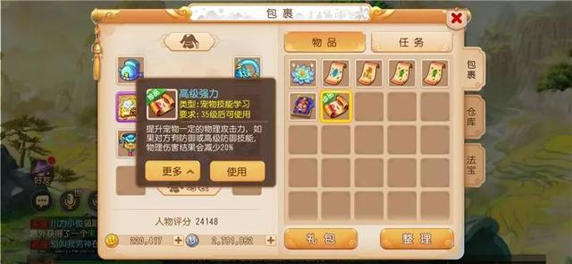 在挖到宝石锤后,他去长寿桥挖高级藏宝图时意外获得一本高级强力兽诀,高级强力是给攻宠用的技能,可以提升宠物一定的物理攻击力。