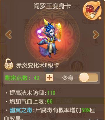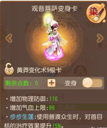 辅助对变身卡的选择较为灵活。在PVE中,镇元子是最适合辅助的变身卡,其次是白无常,再次是蝎子精。PK中,地府最多的选择是阎罗王,普陀一般是观音或青莲;其次是唐僧,两个门派都可以变。除此之外也经常变身菩提、杏林仙等。