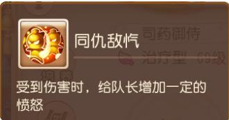 司药御侍:气血越低,推气过宫暴击率越高。在队伍残血时经常能看到司药爆四个奶。而本命技能“同仇敌忾”还可以给自己增加愤怒,使我们能更容易开出来特技。仅需点出天脉技能即可。