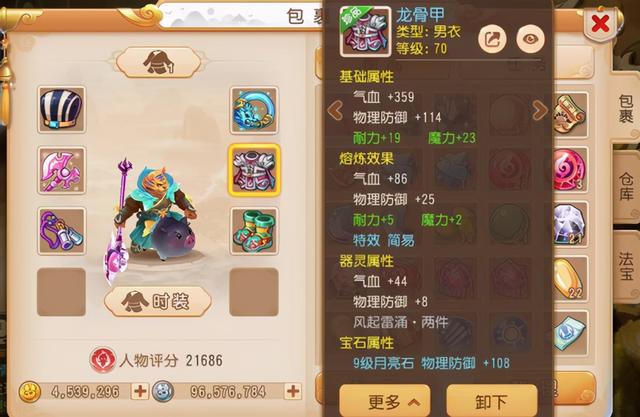 接下来就是70级简易衣服,基础属性方面:气血+359、物理防御+114,与武器一样,衣服的双加也相当重要,算上熔炼效果,耐力+24、魔力+25,这样的属性可以进一步强化法系的属性。
