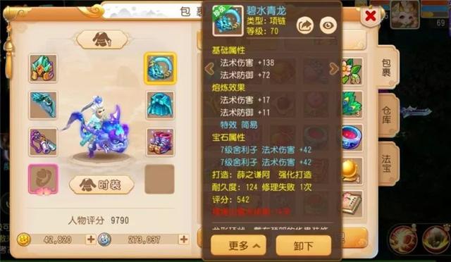 从他的人物属性来看,他的无符法伤已经有1131。如果他换上一把70简易弓,法伤可轻松破1200。不过,他的气血只有2846,物防635,法防716。由于他的物防和法修是8,所以他这个号比较脆。不过这也没办法,资源有限,攻和防不可兼得。