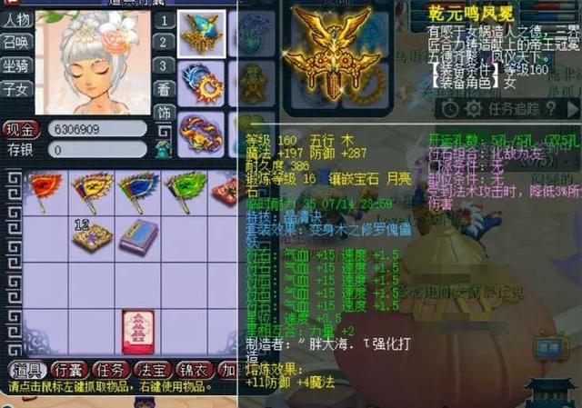 第一件展示的装备,是这件160级满段月亮的晶清傀儡妖女头,满段之后这件女头能提供298点防御,晶清诀作为大特技中的佼佼者,实用性那是没的说。五件敏捷套能提供给号主更多的速度属性,出手更快。