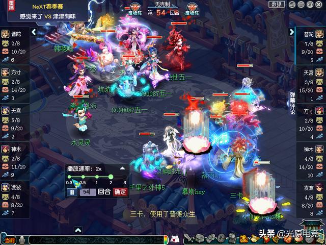 观战方感觉来了阵容:普陀、天宫、方寸、神木、凌波;经对战方津津有味阵容:普陀、天宫、方寸、神木、凌波。双方阵法均未鹰阵无克制。观战方有封系一速,开局就选择了笑里对战方辅助,防止对战方笑里观战方物理的野兽点。不过对战方也同样很注意精细化操作,笑里观战方法系,防止观战方法系放下对战方物理。前期对战双方都以清宠、控制为主。第51回合,对战方点杀了观战方凌波城,同时催眠了观战方法系,迫使观战方几回合内没有输出能力。观战方普陀在场,场上宠物数量也很健康,通过顶血、点灯迅速恢复了状态,并起了罗汉,逐渐拉回了局势。经过68回合的殊死较量,观战方起了罗汉状态更好,最终还是找准机会点杀了观战方普陀。对战方津津有味战队获胜!