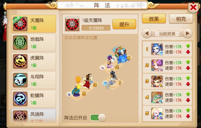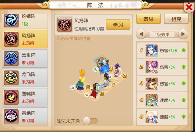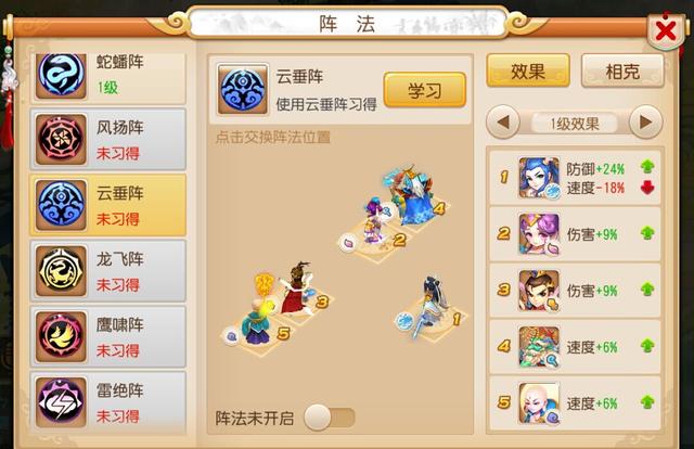 风扬阵加成不是很高,但是没有减益状态,小编觉得在效果上甚至不及云垂阵。