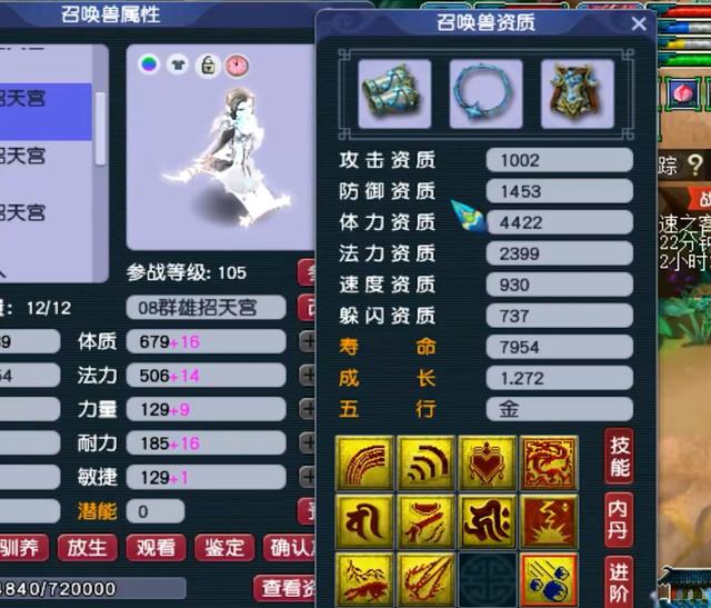 另外,这个角色配置的召唤兽也不差,基本都是附加多个特殊技能的画魂。比如上图这只法宠画魂,附加了净台妙媂、须弥真言以及龙魂三个特殊技能,也是价值超过6位数的召唤兽宝宝。