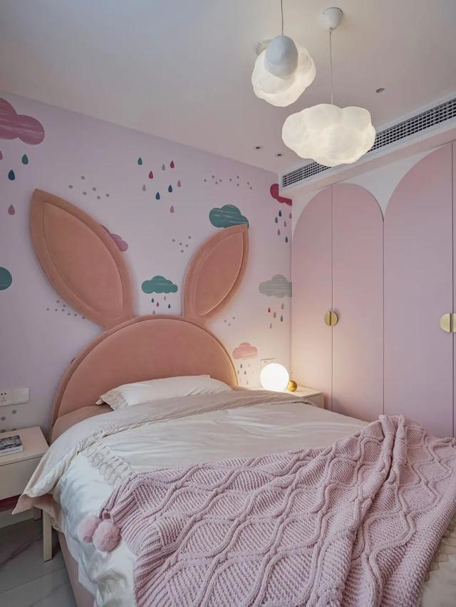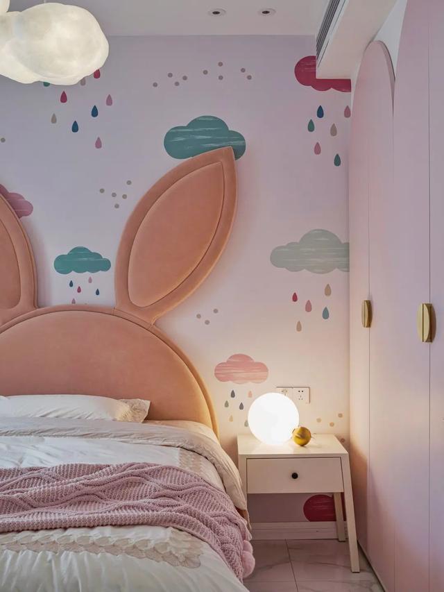 轻盈温暖的儿童卧室,亮丽的粉色,围塑恬静柔美的空间,墙上图画唤起了天真活泼的氛围,将孩子带入了梦幻般的世界。